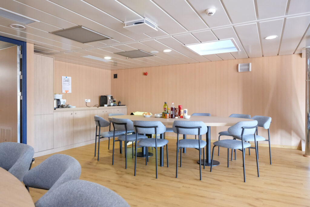 ✔️ The dining room (approx. 75 m²): Three hot meals are served each day and are included in your stay. Share these gourmet moments with the crew in a warm and authentic atmosphere.